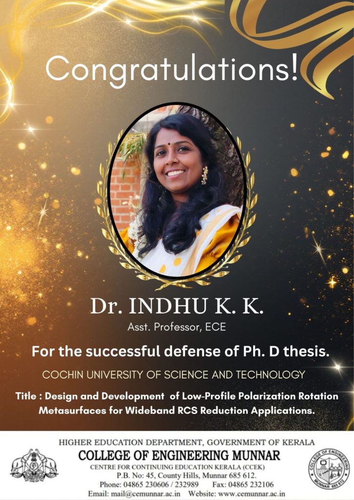 Congratulations to Dr. Indhu K. K. on the successful defense of  Ph.D. thesis at Cochin University of Science and Technology.